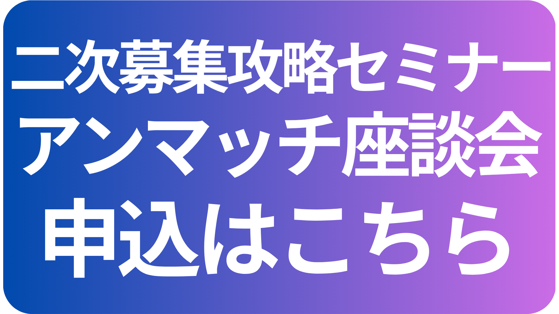 17:30~18:30二次募集完全攻略セミナー(1回目) 19:30~20:30二次募集完全攻略セミナー(2回目) |