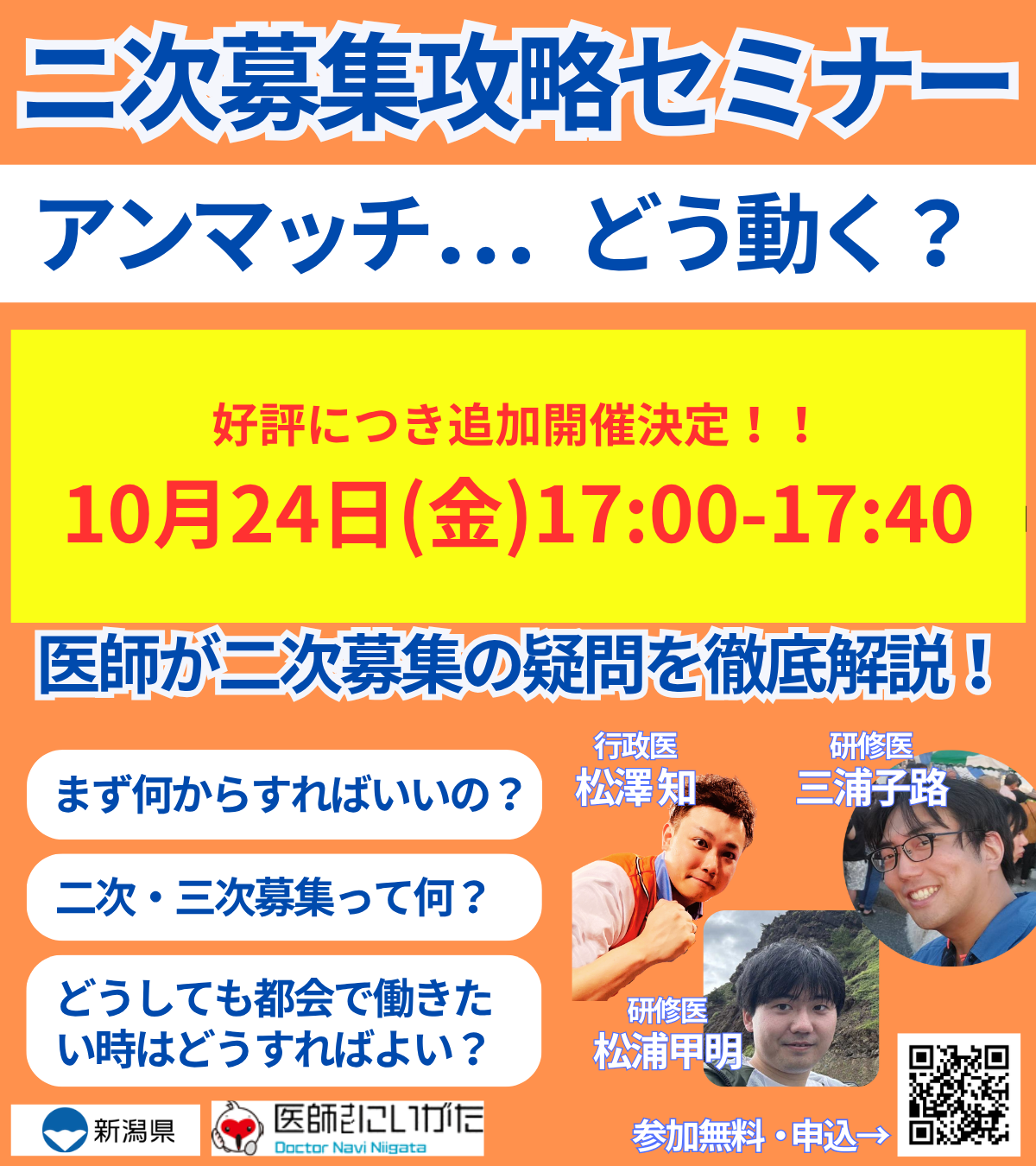 新潟県ではアンマッチを乗り越えるための二次募集完全攻略セミナーを開催します。