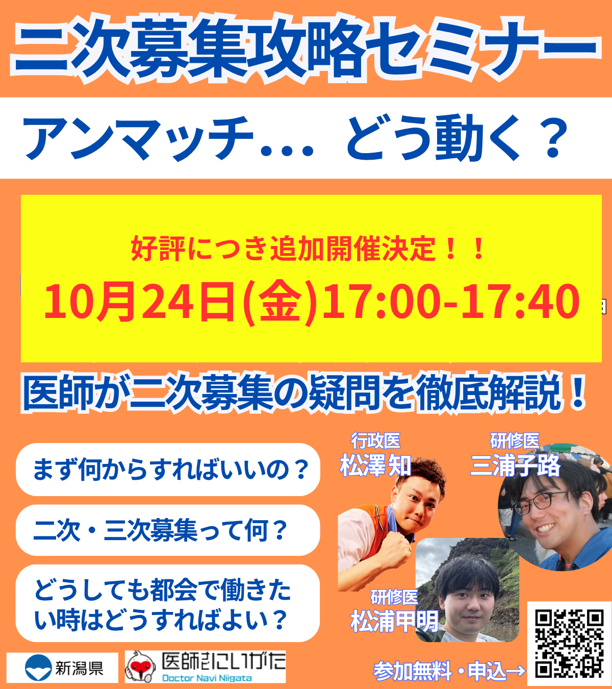 新潟県ではアンマッチを乗り越えるための二次募集完全攻略セミナーを開催します。