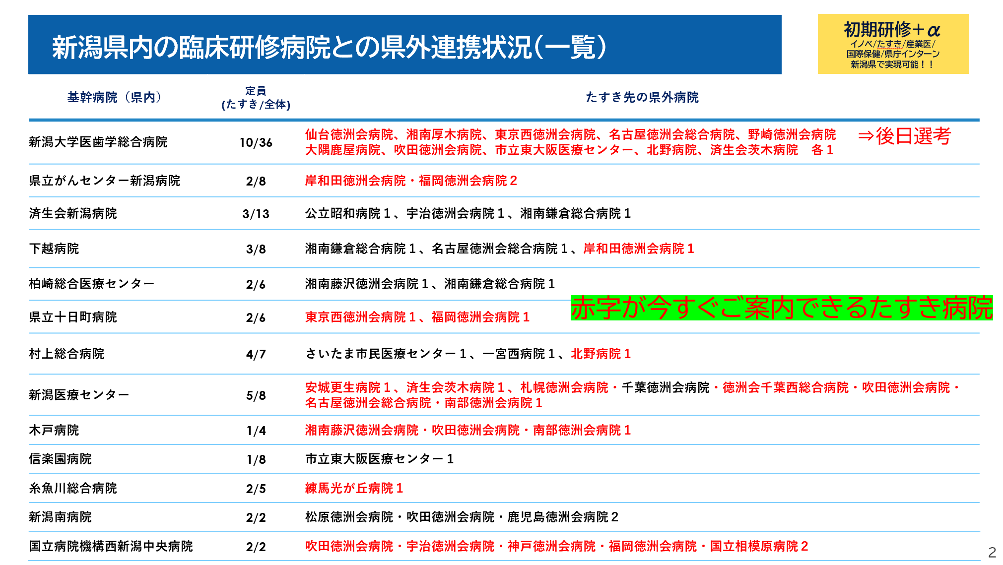 ※随時、枠が埋まる可能性がありますので、空き状況については新潟県もしくは病院までお問い合わせください。